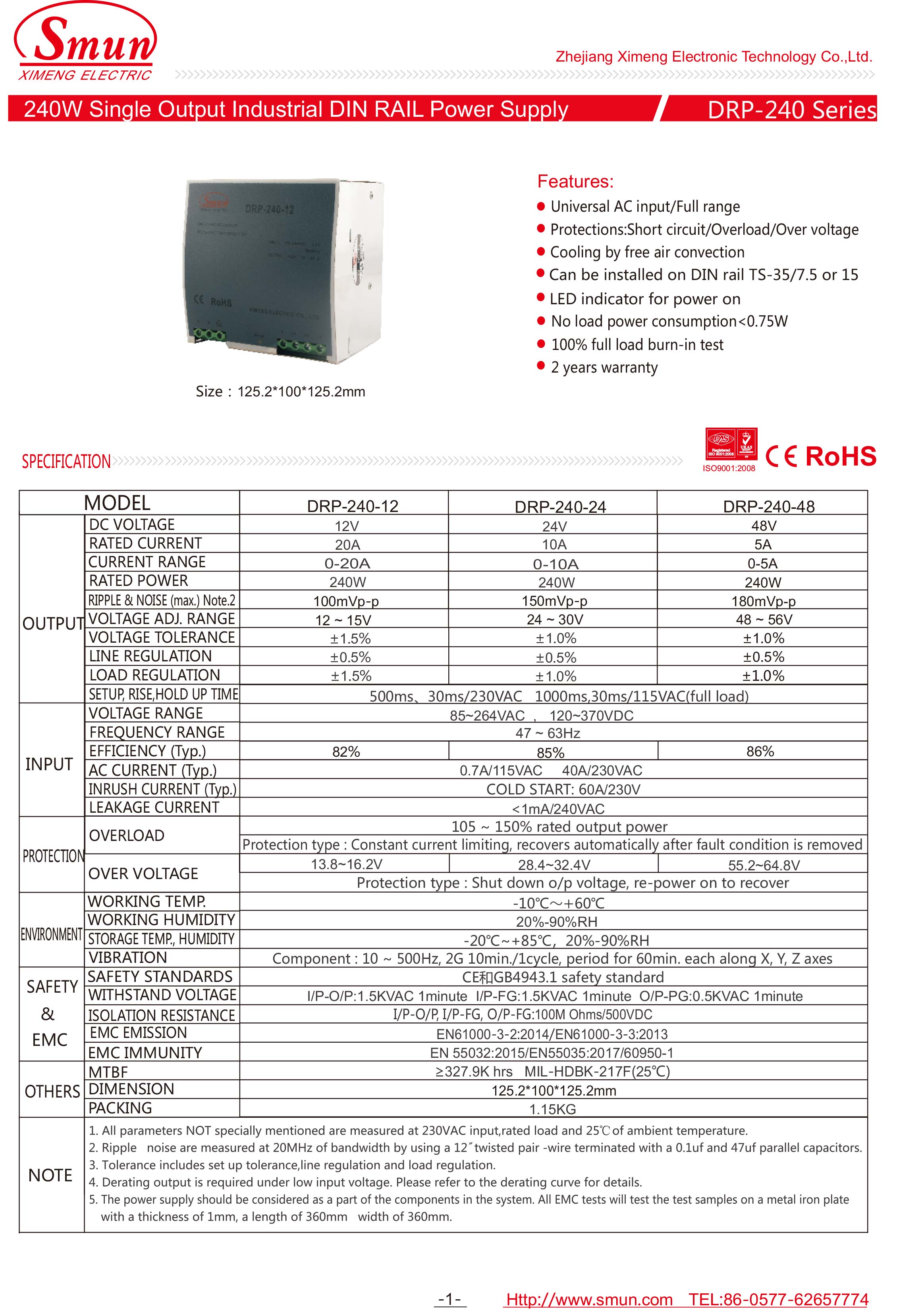 DRP-240 240W PFC DIN 导轨电源